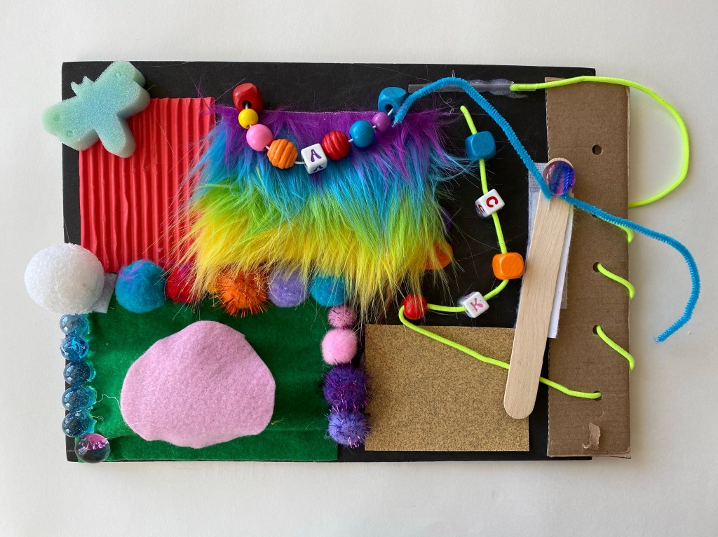 Custom designed and crafted, each board is a unique work of art on its own. These are interactive sensory boards made from a variety of art materials, hand crafted for tactile, visual and gentle auditory stimulation. Encourages fine and small motor skills practice while offering a soothing and engaging hands on experience.